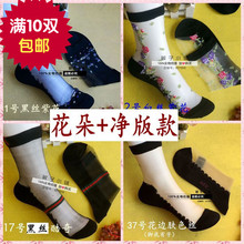 春夏超薄透明冰丝袜短筒纯棉底防滑短袜子蕾丝超薄水晶丝女士袜