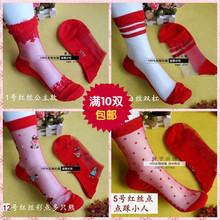 本命年踩小人福字纯棉短筒女袜冰丝袜短袜水晶丝透明大红色袜子