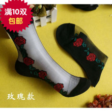 玫瑰花超薄纯棉底丝袜防滑透肉提花冰丝女袜水晶丝女士复古短袜
