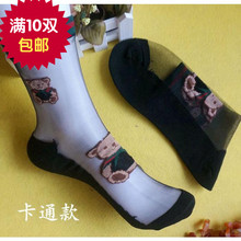 小熊 秋冬季透明短筒纯棉底短袜子超薄刺绣水晶丝袜蕾丝冰丝女袜