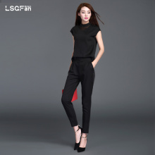 零式起凡2016夏装新款圆领拼接雪纺连体裤修身小脚裤套装