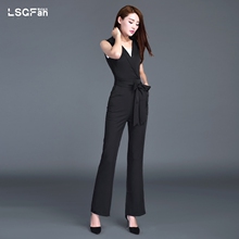 零式起凡夏装新款黑色气质修身V领系带连体裤宽腿长裤