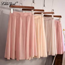 2016夏季纯色半身裙 百搭半身裙显瘦简约黑色大码雪纺中裙子夏女