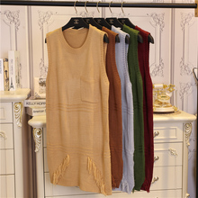 秋冬装韩版圆领无袖开叉针织衫口袋中长款套头毛衣背心马甲女M104