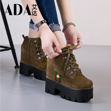 9227震地王冬季厚底内增高短靴子迷彩真皮英伦马丁靴高跟鞋女松糕