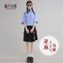 亚麻材质 五四民国时期女青年学生服套装 毕业写真合唱表演出服装
