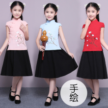 小女孩幼儿童宝宝古装民国学生装手绘古筝演出服唐装汉服国学服装