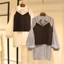2017韩国东大门代购春夏季新款灯笼袖条纹衬衫打底裙吊带两件套