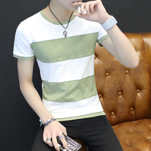 2017新款男装春装短袖t恤韩版修身百搭潮流男士条纹个性休闲简约
