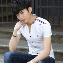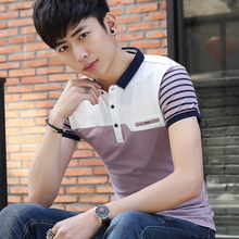 男装夏装2017新款潮流上衣韩版帅气个性青年 翻领男士有领t恤短袖