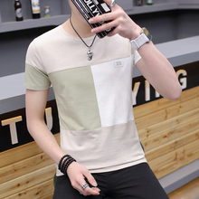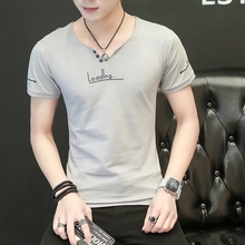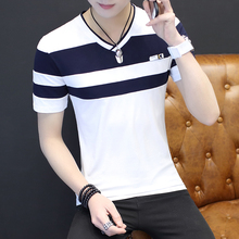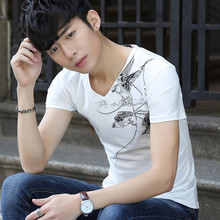 男士短袖t恤青少年韩版潮流时尚修身男装春装2017新款V领宽松