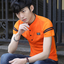 男士短袖t恤2017新款男装夏装韩版潮流立领百搭简约橙色帅气薄款