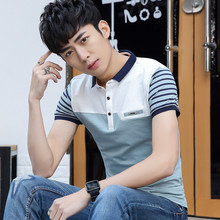 精神小伙社会韩版潮流男士短袖t恤翻领男装春装半截袖个性t血帅气