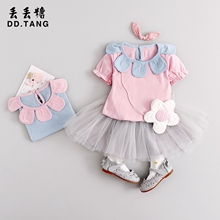 女宝宝春装套装 夏季女童装潮0-1-2-3岁婴儿衣服公主网纱裙裤韩版