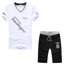 夏季V领短袖T恤韩版青少年学生短袖套装五分运动短裤休闲套装男装