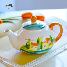DFC手绘陶瓷茶壶 过滤泡花茶红茶下午茶茶具 欧式田园手工水壶