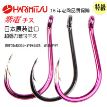 哈里米兹黑色管付千又鱼钩 三角牙钩尖轻硬锋利 紫色紫电 大包装