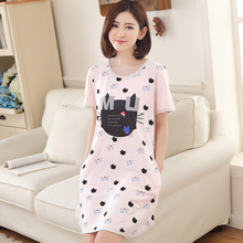 女夏睡衣短袖连体裙 纯棉韩版胖mm加肥加大 可爱中长睡衣夏连衣裙