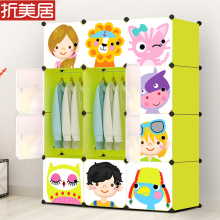 折美居儿童衣柜简易折叠衣柜组装钢架衣橱组合树脂卡通宝宝收纳柜