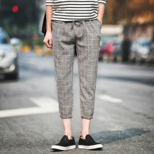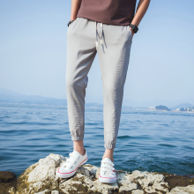 原宿ulzzang森马夏季亚麻休闲九分裤男学生薄款日系男小脚棉麻9分