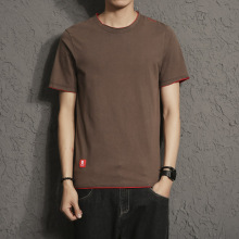原宿ulzzang时尚夏季假两件短袖T恤男士修身大码日系圆领纯棉体恤