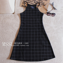 2017年新款春装 欧美风复古挂脖削肩格子无袖露肩连衣裙短裙