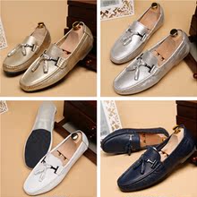 2017白色流苏蛋卷豆豆鞋男真皮软面软底韩版潮驾车鞋懒人鞋一脚蹬