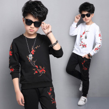 6春秋季男童碎花t恤套装9中大童套头两件套休闲外套童装12-15岁