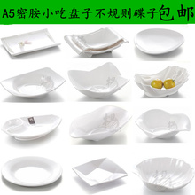 包邮仿瓷不规则小吃盘子密胺白色盘创意蛋糕点心小碟子凉菜盘餐具