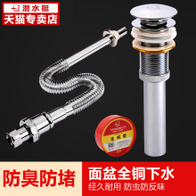 潜水艇面盆防臭下水管卫生间洗脸台盆手池全铜落水器排水软管套装