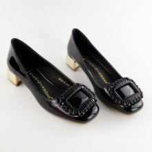 2017春夏季新款粗跟单鞋女方扣漆皮浅口中跟皮鞋英伦百搭方头女鞋