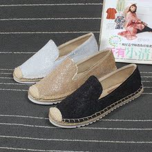 2017秋新款圆头闪粉中口乐福鞋外贸草编平底渔夫单鞋舒适懒人女鞋