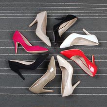 外贸简约OL浅口尖头高跟单鞋绒面裸色舒适细跟职业鞋大码修脚女鞋