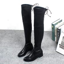 秋冬过膝长靴女粗跟长筒过膝靴尖头低跟高筒马丁靴瘦腿弹力女靴子