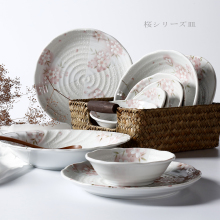日本进口有古窑 日式浮雕釉下手绘陶瓷餐具套装 雨滴粉色花瓣系列