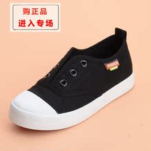 巴布豆童鞋女童帆布鞋白色2017春秋新款儿童布鞋中大童男童单鞋黑