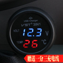 汽车用品车载充电器 带测电压检测usb温度显示器多功能监测表包邮