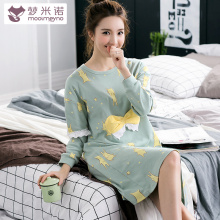 可爱学生睡裙女秋性感睡衣少女纯棉长袖韩版九分袖春秋清新居家服