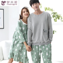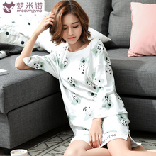 2017韩版情侣睡衣女裙男裤夏季纯棉春秋少女睡裙七分袖男士家居服