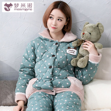 加厚珊瑚绒夹棉睡衣女装秋冬长袖纯棉修身棉袄家居服保暖套装外穿