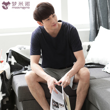 纯棉男士睡衣套装短袖青年家居服夏季大学生简约居家服全棉睡衣男