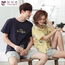 夏季情侣睡衣时尚韩版女士家居服男款夏天居家服两件套装纯棉短袖