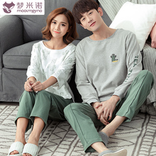 2017新款纯棉情侣睡衣长袖春秋韩版家居服套装男女款居家服情侣款