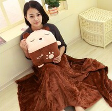 卡通可爱猴子三合一抱枕被子两用靠垫空调被办公午休毯生日礼物大