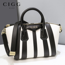 CIGG西歌正品真皮女包 优质牛皮新款撞色条纹百搭手提单肩贝壳包