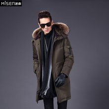 迷森2016冬季加厚中长款羽绒服男 欧美简约修身长款白鸭绒外套