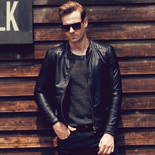 男士斜拉链薄款韩版休闲皮衣 修身型机车翻领皮夹克 春秋男装外套