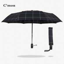 Cmon全自动自开自收双人大雨伞男士三折叠创意商务格子绅士晴雨伞