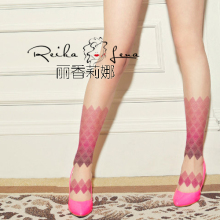 元素风格 彩虹渐变色丝袜 菱形格超薄连裤袜 时尚印花打底袜 有范