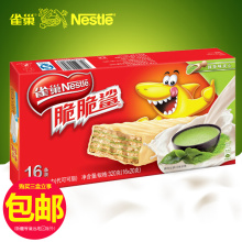 雀巢脆脆鲨威化白巧克力抹茶味16条320克装抹茶夹心威化饼干包邮